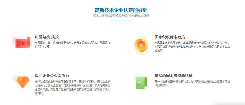 其中,,企业拥有的专利、、植物新品种、、、国家新药、、软件著作权等属于Ⅰ类核心知识产权,,是高新技术企业认定的首要和必须条件,,在高企认定中也会给申请人带来相应较高的分数。。